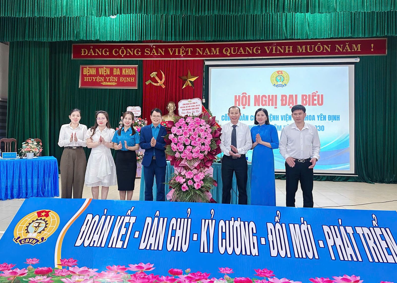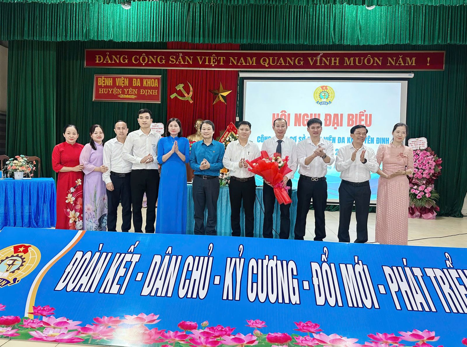Đại diện lãnh đạo địa phương có Đ/C Nguyễn Nhân Ái-Chủ tịch Công đoàn xã Yên Định, cùng các đồng chí Chủ tịch công đoàn cơ sở và 61 đại biểu tiêu biểu đại diện cho 245 đoàn viên công đoàn của bệnh viện.
