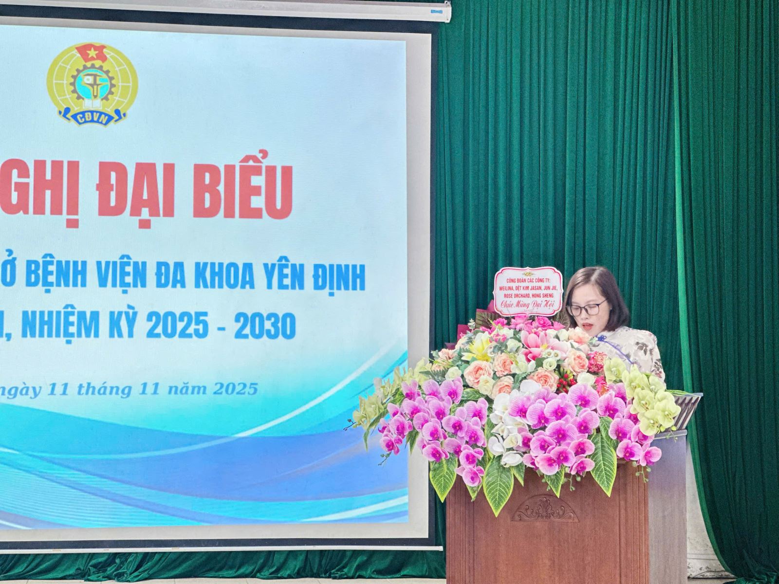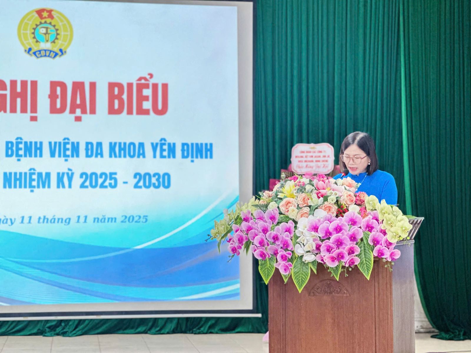 Trong nhiệm kỳ (từ năm 2023 đến nay), dưới sự lãnh đạo, chỉ đạo của Công đoàn ngành cấp trên, Công đoàn Bệnh viện đa khoa Yên Định đã phát huy vai trò đại diện, chăm lo và bảo vệ quyền, lợi ích hợp pháp, chính đáng của đoàn viên công đoàn, người lao động. Các phong trào thi đua cùng các hoạt động văn hóa – thể thao, thiện nguyện, xã hội được tổ chức sôi nổi, thiết thực; tạo không khí đoàn kết, gắn bó, góp phần hoàn thành xuất sắc nhiệm vụ chuyên môn, hướng đến mục tiêu “Tất cả vì sự hài lòng của người bệnh”.