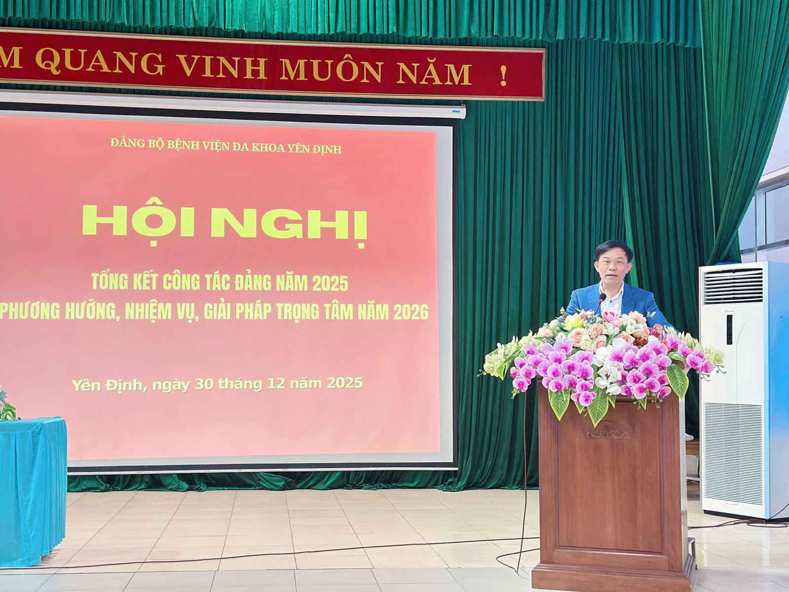Chiều ngày 30/12/2025, Đảng bộ Bệnh viện Đa khoa Yên Định đã tổ chức Hội nghị tổng kết công tác Đảng năm 2025, đề ra phương hướng, nhiệm vụ trọng tâm năm 2026.
