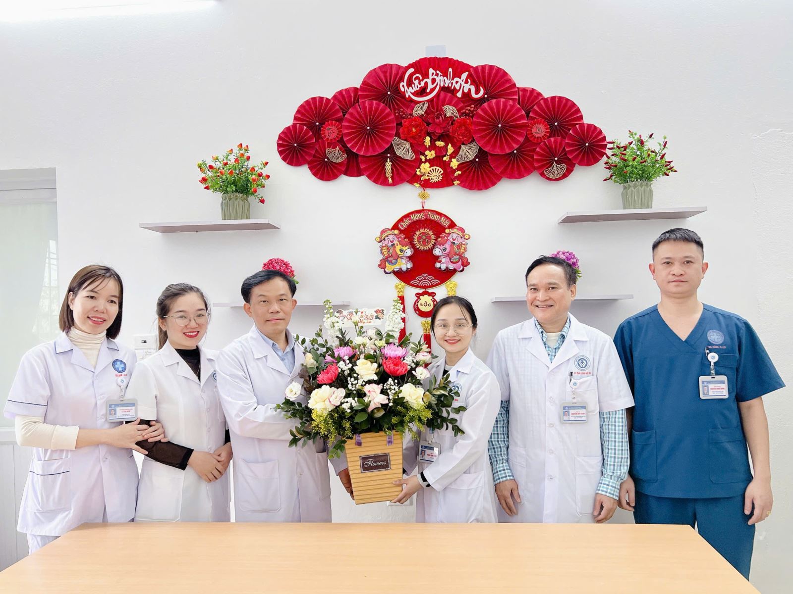Đến tặng hoa, chúc mừng các đồng chí nữ cán bộ, viên chức tại các khoa, phòng, các đồng chí: Phạm Văn Bằng-Bí thư Đảng uỷ, giám đốc bệnh viện; Đ/C Nguyễn Danh Lâm-Phó bí thư Đảng uỷ, phó giám đốc, Chủ tịch công đoàn, Đ/C Trịnh Minh Toàn-Phó giám đốc bệnh viện đã gửi lời chúc tốt đẹp tới toàn thể chị em phụ nữ trong bệnh viện. Các đồng chí ghi nhận những đóng góp to lớn của toàn thể nữ cán bộ, viên chức, người lao động của đơn vị trong thời gian qua và mong muốn tất cả các chị em phụ nữ tiếp tục đoàn kết, sáng tạo, phát huy sức mạnh, vai trò của phụ nữ trong xây dựng gia đình hạnh phúc và nỗ lực không ngừng trong sự nghiệp chăm sóc, bảo vệ, nâng cao sức khỏe cho nhân dân, xây dựng bệnh viện ngày càng vững mạnh.