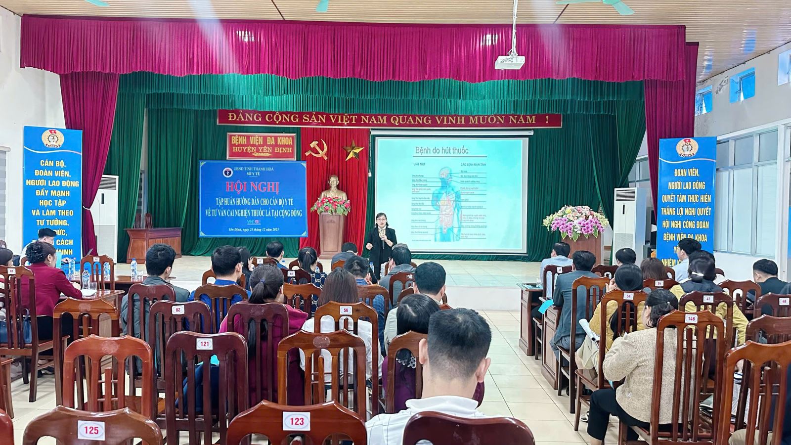 Nhằm nâng cao năng lực chuyên môn cho đội ngũ cán bộ y tế cơ sở trong công tác phòng, chống tác hại của thuốc lá, Sáng ngày 23/12 tại Hội trường lớn-Bệnh viện Đa khoa Yên Định, Sở Y tế Thanh Hóa đã tổ chức lớp tập huấn hướng dẫn tư vấn cai nghiện thuốc lá tại cộng đồng cho cán bộ y tế.