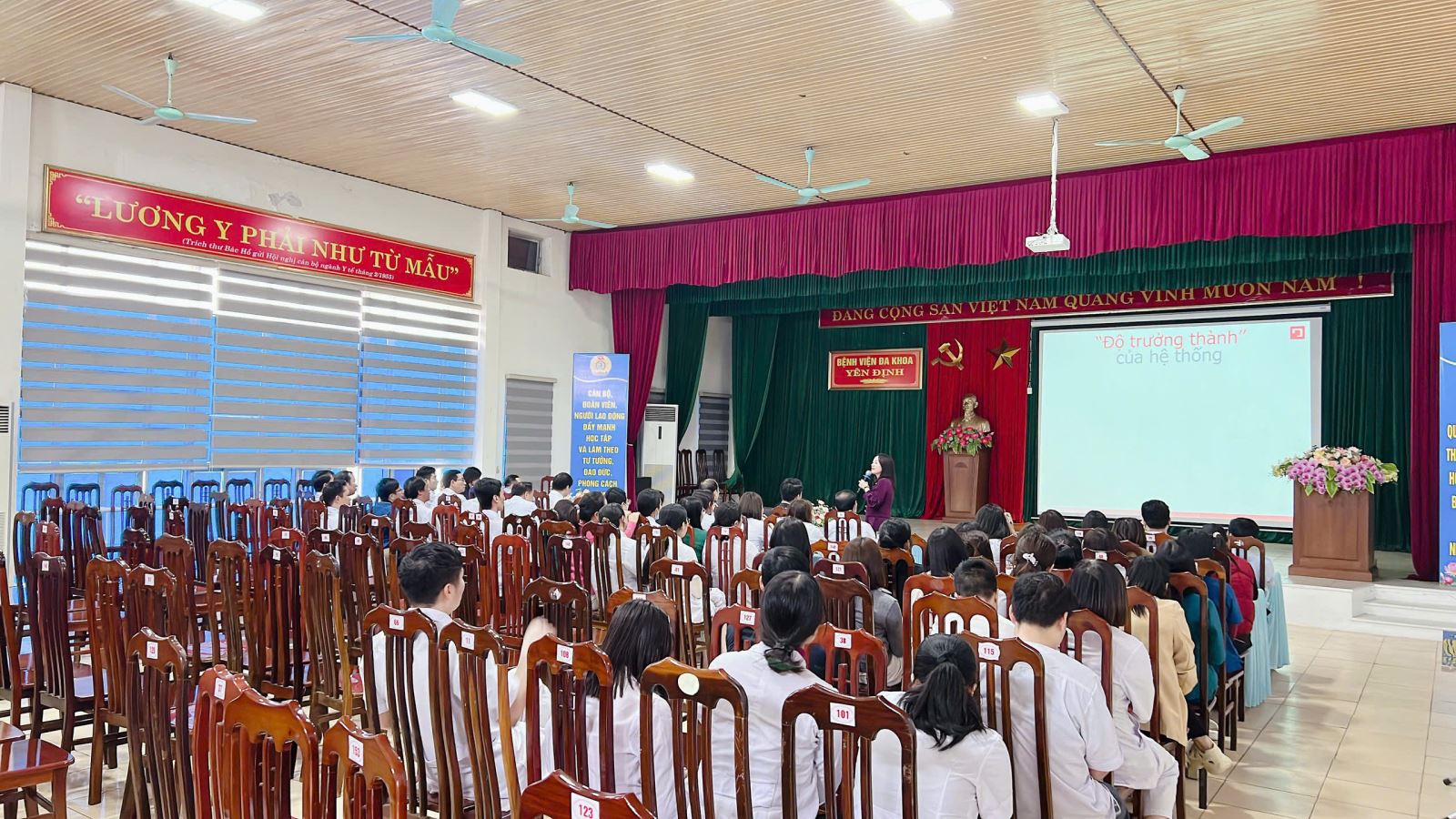 Nằm trong chương trình tập huấn “Thay đổi phong cách, thái độ phục vụ-Nâng cao chất lượng dịch vụ tại các cơ sở y tế”, Chiều ngày 05/3/2026, Bệnh viện Đa khoa Yên Định đã tổ chức 01 buổi tập huấn chuyên sâu dành riêng cho đội ngũ cán bộ chủ chốt của bệnh viện. với chuyên đề: Triển khai hiệu quả hệ thống quy trình tại bệnh viện.