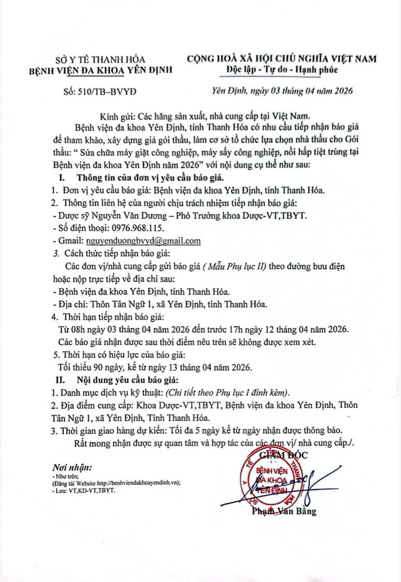 Trang điện tử thuộc bản quyền của Bệnh viện đa khoa Yên Định