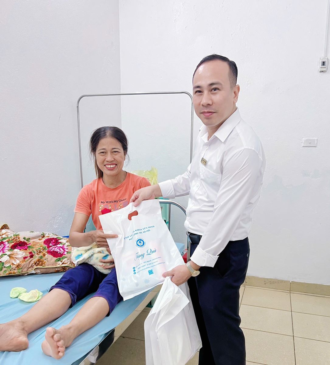Hình ảnh: Nhân viên phòng CTXH tặng quà cho các bé đi khám bệnh